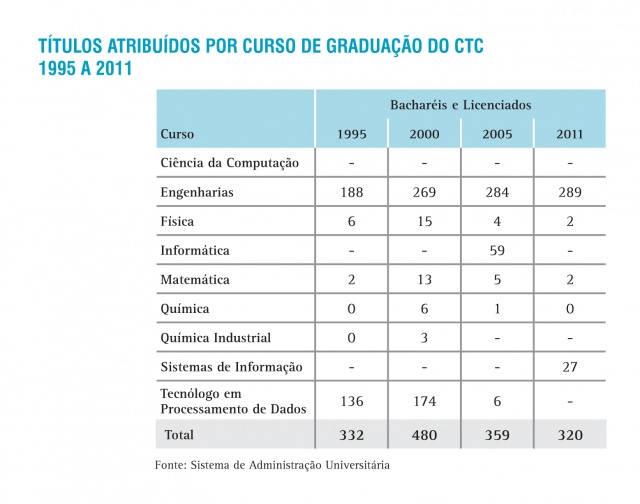 Títulos atribuídos por curso de Graduação do CTC - série histórica