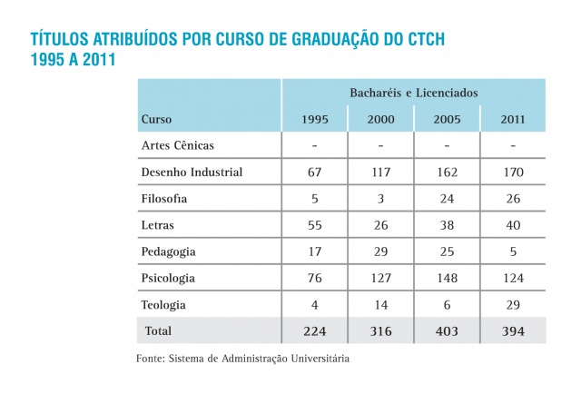 Títulos atribuídos por curso de Graduação do CTCH - série histórica