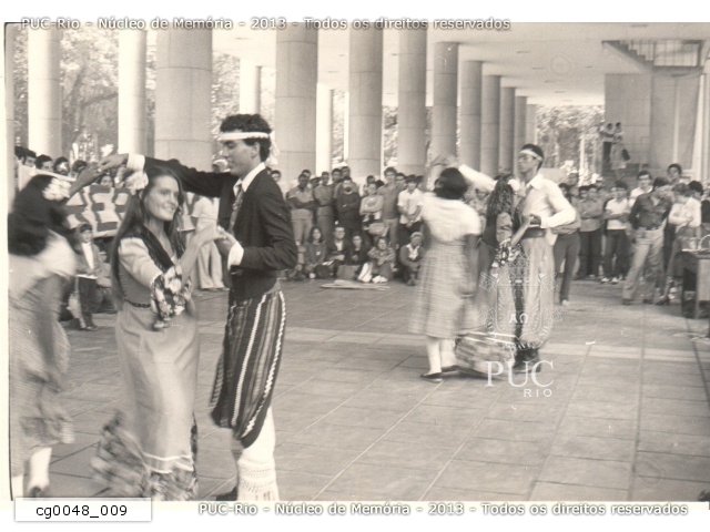 cg0048_009 | 1980 circa | Apresentação de grupo folclórico nos pilotis. Evento do Projeto Funarte. |