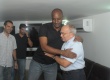 O prof. Augusto Sampaio recebe os cumprimentos dos funcionários. |