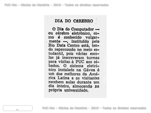 O Dia do Computador foi inspirado em programa existente na Universidade de Waterloo, Canadá. Atendia a alunos do ensino médio e de cursos universitários. Os alunos passavam o dia inteiro na PUC-Rio, aprendiam a programar, perfurar cartões e executar seus programas no computador IBM 1130. A maioria jamais havia visto um computador.