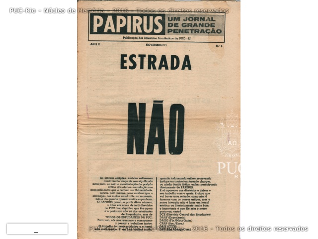 Foi publicado o primeiro número do jornal Papirus, do DAAF - Diretório Acadêmico Ademar Fonseca, das engenharias, com "assuntos vários, de interesse da classe estudantil" (Anuário PUC-Rio 1970, p. 14).