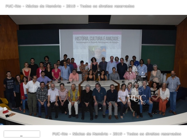 Abertura com a Profa. Maria Elisa Noronha de Sá (Diretora do Departamento de História), o Prof. Luiz Roberto Cunha (Decano do Centro de Ciências Sociais) e o Prof. Júlio Diniz (Decano do Centro de Teologia e Ciências Humanas). Participação dos professores Carmen Felgueiras (UFF), Hans Ulrich Gumbrecht (Stanford University), Luiz Costa Lima (HIS), Marcos Veneu (HIS, FCRB), Helena Bomeny (UERJ), Leopoldo Waizbort (USP), Luiz Eduardo Soares, Maria Alice Rezende de Carvalho (CIS), Maria Laura Viveiros de Castro (UFRJ), José Reginaldo Gonçalves (UFRJ), André Botelho (UFRJ), Élide Rugai Bastos (Unicamp), Fernanda Peixoto (USP), Lúcia Lippi (CPDoc/FGV), Marcelo Jasmin (HIS), Jorge Myers (Universidad de Quilmes) e Otavio Velho (Museu Nacional/UFRJ).