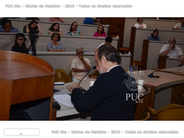 A Aula Magna foi ministrada pelo ex-aluno da PUC-Rio Eduardo Escorel, diretor, crítico de cinema e coordenador da Pós-Graduação em Cinema da Fundação Getúlio Vargas, que fez uma homenagem às cinco personalidades com as quais aprendeu o ofício cinematográfico.