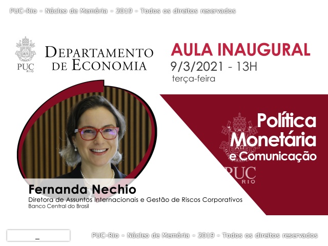 Política Monetária e Comunicação. Palestrante: Fernanda Nechio, diretora de Assuntos Internacionais e Gestão de Riscos Corporativos do Banco Central do Brasil.