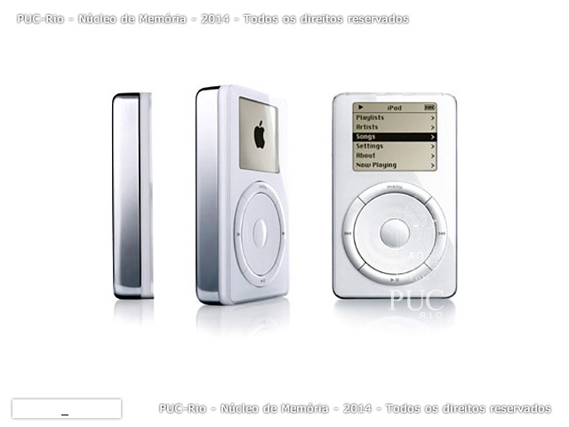 Primeiro modelo do Ipod. > A Apple lança o IPod. A Apple lança o aparelho de reprodução digital de audio conhecido como Ipod.