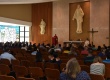 O público observa o Pe. Alexandre Paciolli durante a missa. |