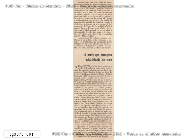 Revista Manchete no. 335: p.24 e 25 - "Padre Roser ensina radioatividade às Forças Armadas". Com foto. |