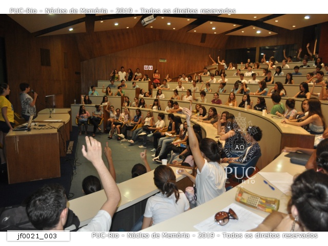 jf0021_156 | 15/4/2011 | Atividades no PUC por um Dia. Palestra com Fernando Caruso. |