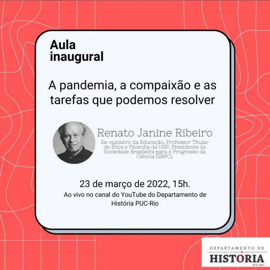 Dia 23/03/2022, 15h. A Aula Inaugural pode ser acompanhada pelo Youtube.