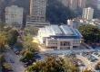 Vista aérea da PUC-Rio. Estão visíveis também o Túnel Acústico da Autoestrada Lagoa-Barra, o Minhocão, o Planetário da Gávea e o Circo Esperança. |