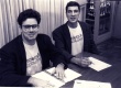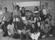 Participantes e premiados na Semana da PUC de 1971, em frente aos elevadores da Ala Kennedy, encostados em um Fusca, entregue como prêmio provavelmente da gincana. Ao fundo, o local onde ficavam os cartões de ponto dos funcionários. |