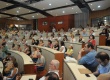 O Vice-Reitor, pe. Ivern, apresenta o relatório anual da vice-reitoria aos membros da congregação universitária. Plateia do evento. |
