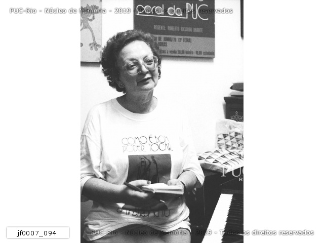 Lydia Podorolvsky, coordenadora do Coral da PUC, em 1983. |