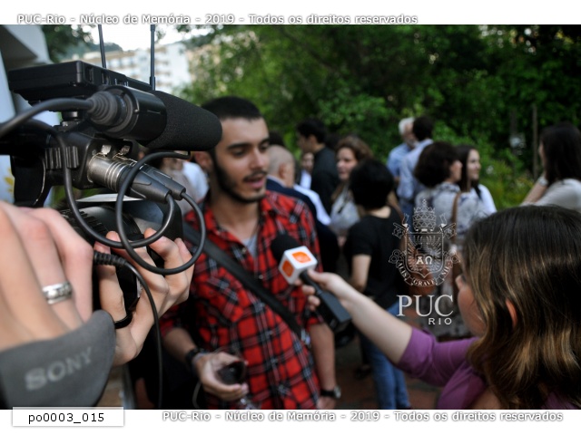 Vencedor do Iº Concurso de Fotografia da PUC-Rio entrevistado na abertura da Exposição PUC-Rio 70 anos, Rumo aos 80. |