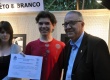 O reitor pe. Josafá Carlos de Siqueira, S.J., entrega prêmio para 2ª colocada da categoria fotografia colorida do Iº Concurso de Fotografia da PUC-Rio. |
