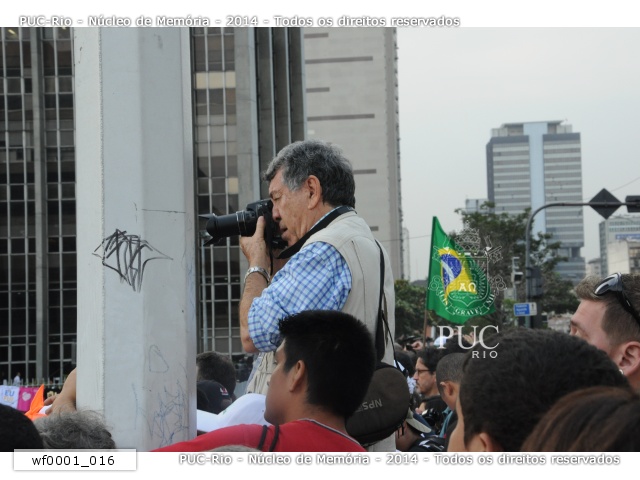 Fotógrafo Evandro Teixeira aguarda a chegada do Papa Francisco. |