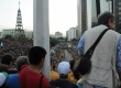 Fotógrafo Evandro Teixeira observa a chegada do Papa Francisco. |