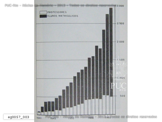 Gráfico de barras com professores e alunos matriculados entre 1941 e 1961. |