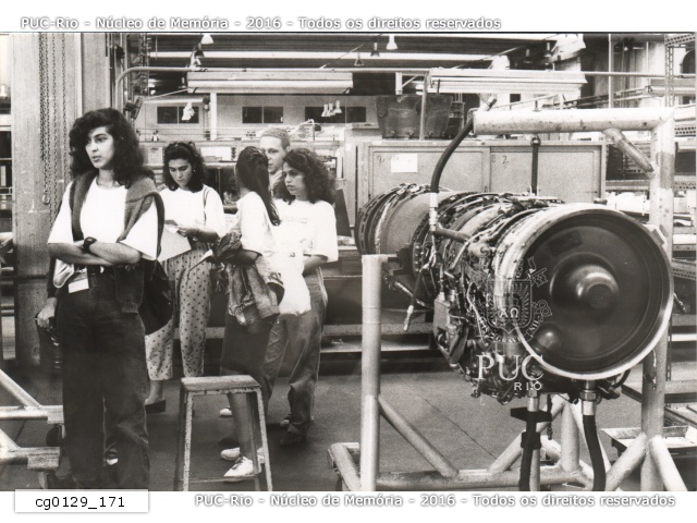 Alunos de administração e economia reunidos em passeio na Cia. Eletromecânica Celma. |