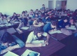 O prof. Affonso Romano de Sant'Anna em aula com alunos na Sala de Mestrado do, à época, Departamento de Letras e Artes. |