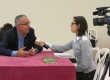 Reitor Pe. Josafá S.J. dá entrevista sobre seu livro em noite de autógrafos. |