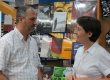 Autora com leitor durante lançamento. |