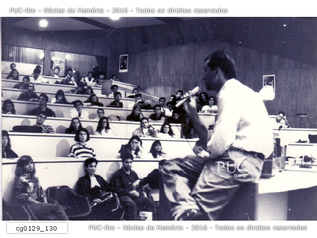 Possivelmente registro de Fernando Augusto, da divisão de marketing da Levi's, em palestra promovida pelo Departamento de Artes da PUC-Rio. |