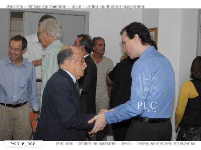 Professor Silva Mello recebe os cumprimentos do Professor Luiz Fernando Martha. |