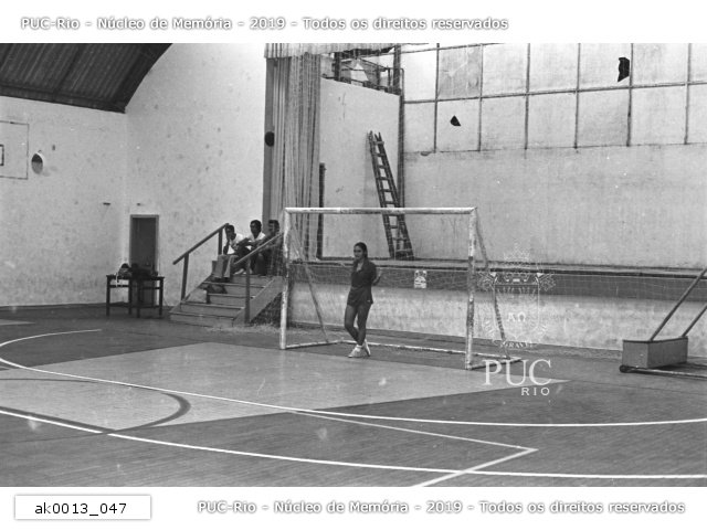 Futebol de salão na quadra do Ginásio. A solidão do goleiro. |
