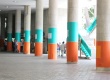 Pilotis do edifício Cardeal Leme decorados com faixas laranja e verde com propagandas de chapas que disputavam as eleições de 2011 para o Diretório Central dos Estudantes da PUC-Rio (DCE). |