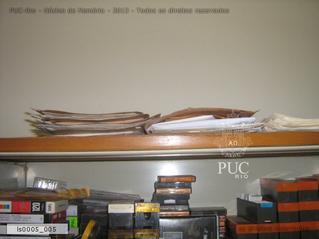 Gavetas contendo documentos do Solar, fitas VHS, fitas-cassete e outras pastas de documentos. |
