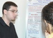 O bolsista de iniciação científica Helio Cannone apresenta o poster sobre sua pesquisa. |