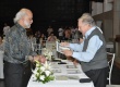 O professor Raul Rosas recebe os cumprimentos do Padre Josafá S.J. pelos 35 anos de dedicação à PUC-Rio. |