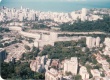 Vista aérea da PUC-Rio, ao fundo a praia do Leblon. Vê-se o Planetário, o Minhocão, a Auto-estrada Lagoa-Barra, o estacionamento, os edifícios da Amizade e Cardeal Leme e Rio Datacentro. |