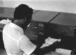 O professor Afonso dos Santos na máquina de microfilme analisa documentos da pesquisa institucional do Departamento de História da PUC-Rio intitulada "Forças de segurança e ordem no Rio de Janeiro - 1822 a 1915", financiada pela Financiadora de Estudos e Projetos (FINEP). |