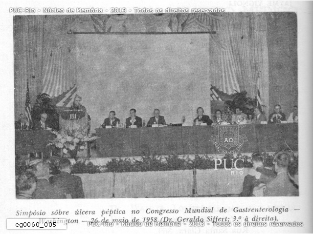 Simpósio sobre Úlcera no Congresso Mundial de Gastrenterologia - Washington - 26 de maio de 1958. (Dr. Geraldo Siffert, 3º à direita), |