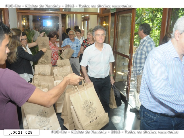 Representantes da administração central e outros professores da PUC-Rio aplaudem o Padre Ivern. |