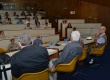 Mesa com palestrantes e a plateia presente ao evento. |