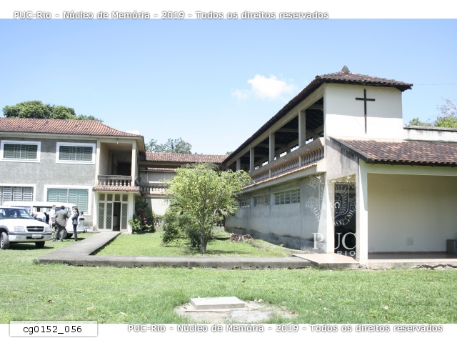 Estrutura existente no Pólo Avançado de Caxias, em preparação para o início dos cursos de extensão que ali seriam oferecidos. Fachada da igreja, com os vistantes à frente. |