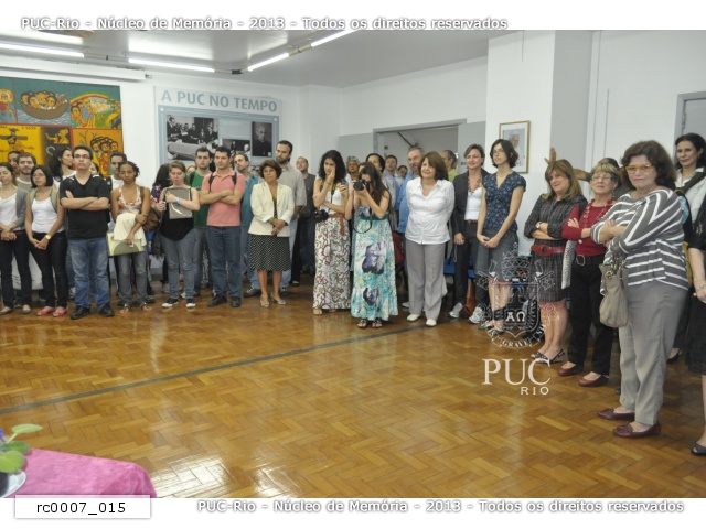 Pessoas presentes ao evento, durante a apresentação do projeto e da estrutura do livro pela Profa. Margarida de Souza Neves (Núcleo de Memória). |