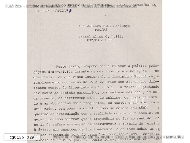 Projeto do Centro de Memória da PUC/RJ - 1987 - cg0021_006 |